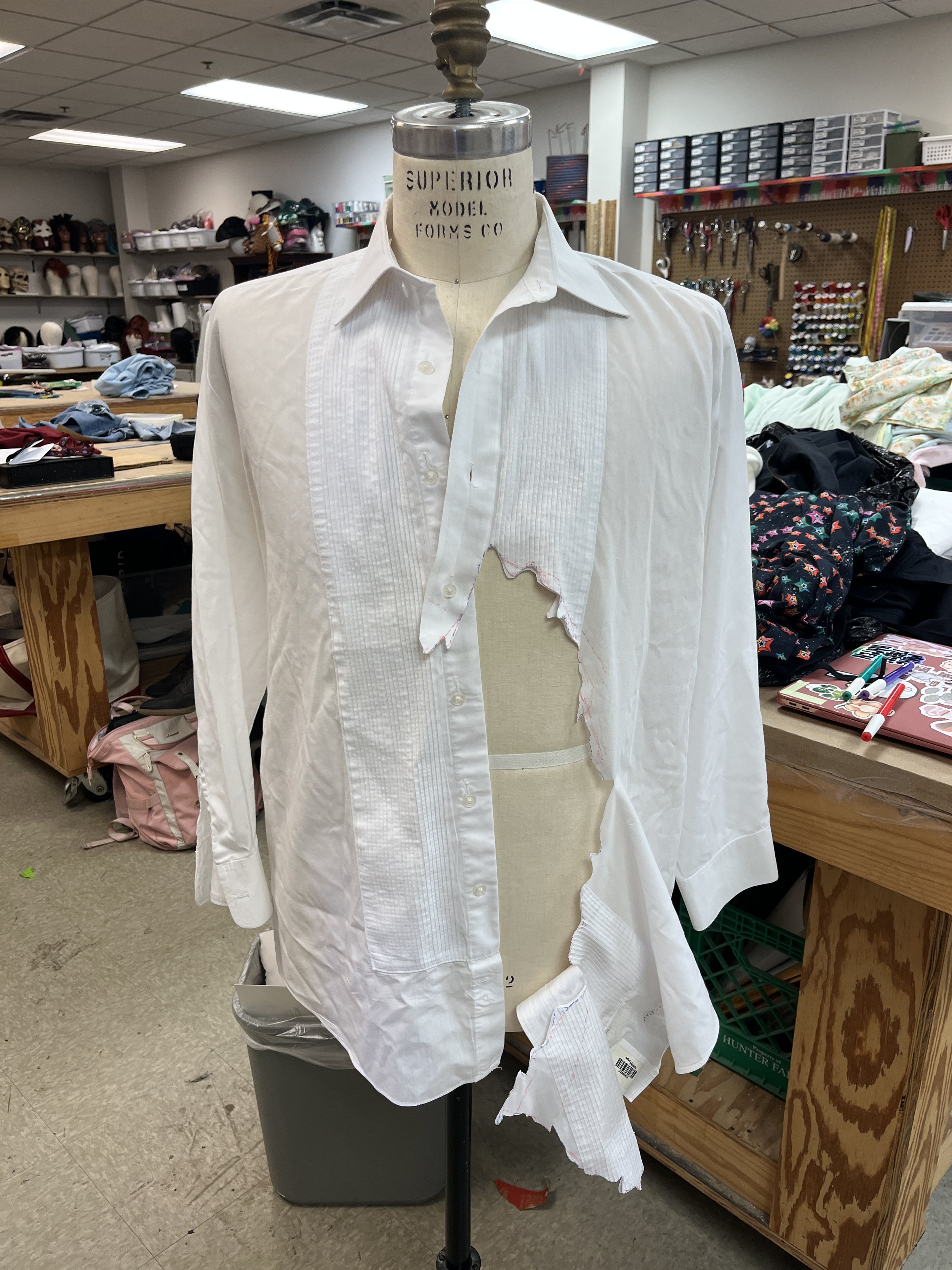 Tony Exploded Tux Shirt: Distressed existing tux shirt
